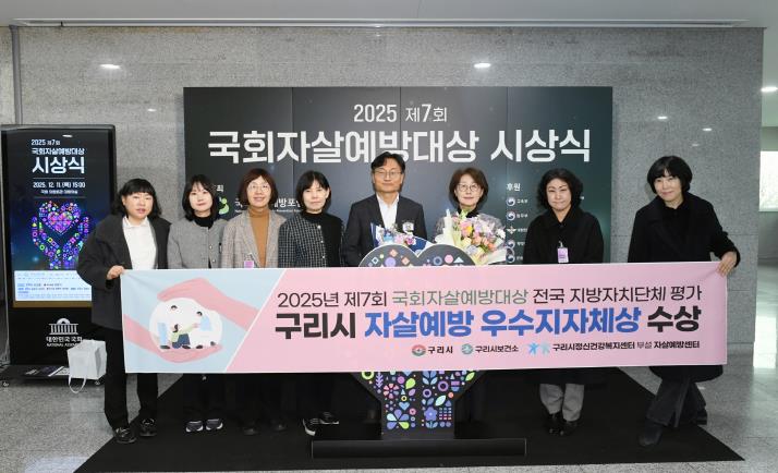 | ▲ 구리시, 2025년 제7회 국회자살예방대상 전국 지방자치단체 평가 '우수 지자체' 선정 |