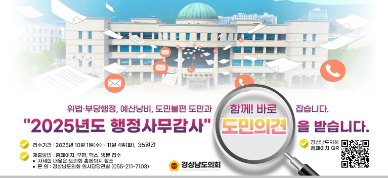 | ▲ “도민 목소리 듣습니다” 경남도의회, 행정사무감사 사전 의견 접수 |