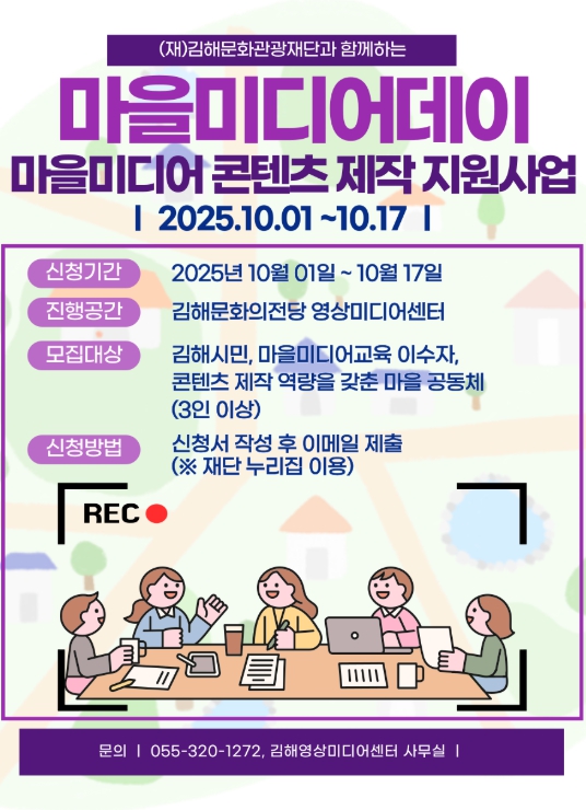 김해시에 주소지를 두고 기존 마을미디어 교육을 이수한 사람 또는 콘텐츠 제작역량을 가진 3인 이상 팀이면 누구나 신청 가능하다.