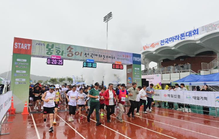 [메이저뉴스]봉화군이 지난 28일 개최한 ‘2025 봉화송이 전국마라톤대회’가 봉화공설운동장 일원에서 2천여 명의 참가자와 가족, 자원봉사자 등이 참석해 성황리에 종료됐다.