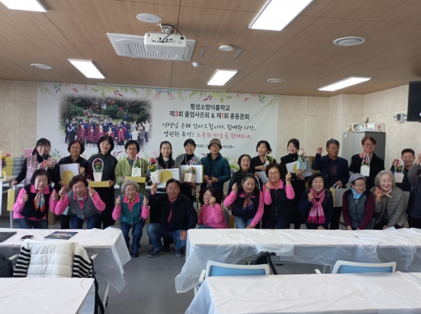 [메이저뉴스]횡성군은 성인 문해 학습장인 횡성소망이룸학교의 제3회 졸업사은회 및 제1회 총동문회를 28일 평생학습관 5층 다목적강당에서 개최했다.