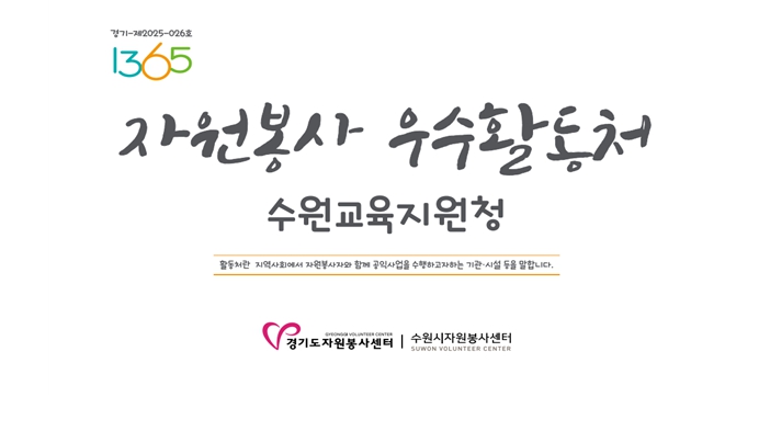 [메이저뉴스]경기도수원교육지원청은 체계적인 교육 자원봉사 운영 성과를 인정받아 ‘2025 경기도 우수 활동처’로 선정됐으며, 12월 16일 수원시자원봉사센터에서 열린 현판 전달식에 참석해 인증 현판을 수여받았다고 밝혔다.