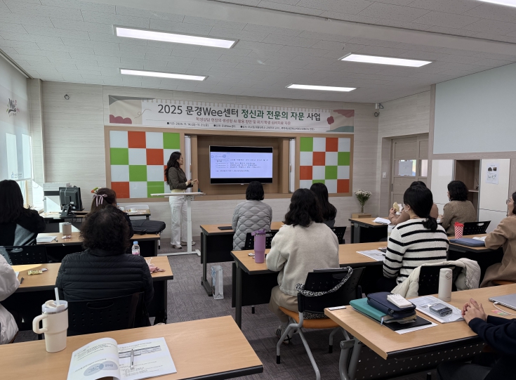 [메이저뉴스]경상북도문경교육지원청 Wee센터는 2025. 11. 17. 관내 Wee클래스 전문상담(교)사 및 Wee센터 직원들을 대상으로 정신과 자문의 사업 『학생상담현장에서 생성형 AI 사용실태 및 활용방안』 연수를 실시했다.