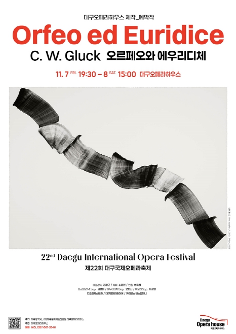 [메이저뉴스] 대구문화예술진흥원 대구오페라하우스는 제22회 대구국제오페라축제의 폐막작으로 글룩의 대표 오페라 ‘오르페오와 에우리디체’를 오는 11월 7일 오후 7시 30분, 11월 8일 오후 3시에 대구오페라하우스 대극장에서 선보인다.