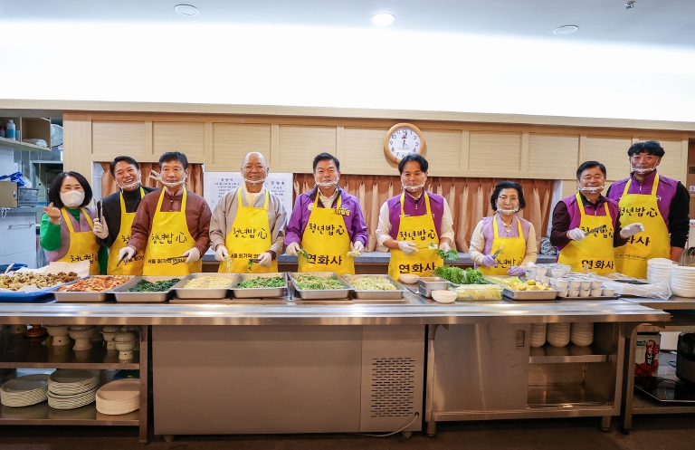 [메이저뉴스]서울 동대문구는 지난 4일 연화사에서 진행된 '청년밥心' 프로젝트에 이필형 구청장이 배식자로 참여해 청년들과 소통하고 격려의 메시지를 전했다고 밝혔다.