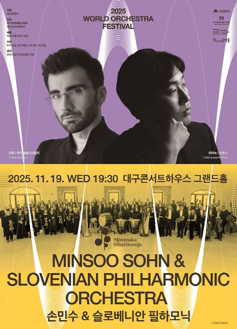 [메이저뉴스]대구콘서트하우스는 월드오케스트라페스티벌의 일환으로 ‘손민수 · 슬로베니안 필하모닉’ 공연을 11월 19일 오후 7시 30분 그랜드홀에서 개최한다.