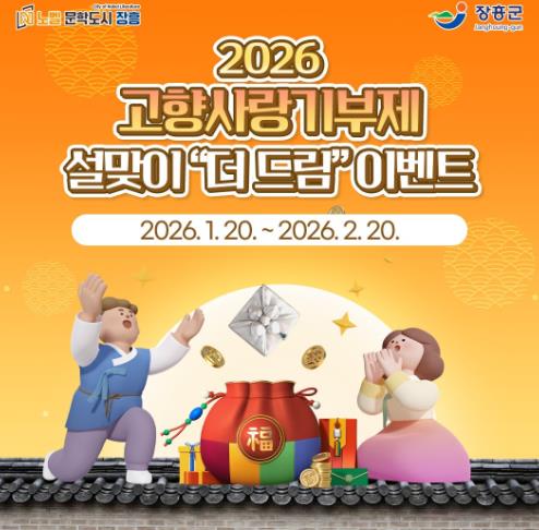 [메이저뉴스]장흥군은 설 명절을 앞두고 고향사랑기부제 활성화를 위해 1월 20일부터 2월 20일까지 ‘2026 설맞이 고향사랑기부제 더 드림 이벤트’를 진행한다.