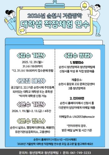 | ▲ 순천시, 2026년 겨울방학 대학생 직장체험 연수생 모집 |