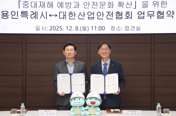 [메이저뉴스]용인특례시는 8일 시청 4층 접견실에서 대한산업안전협회와 ‘중대재해 예방과 안전문화 확산을 위한 업무협약’을 맺었다.