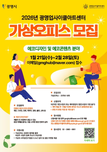 [메이저뉴스]광명시 광명업사이클아트센터는 오는 2월 28일까지 ‘2026년 상반기 가상오피스 지원사업’ 입주 기업을 모집한다.