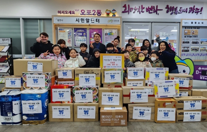 | ▲ 버니베어 전인교육학원 학생들, 광주시 오포2동에 식료품 기탁 |