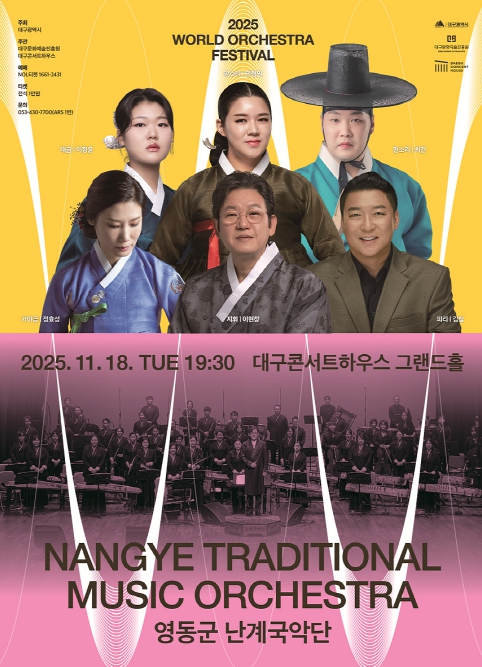 한편 박창근 대구콘서트하우스 관장은 “이번 무대는 한국적인 오케스트라의 또 다른 모습을 보여주는 특별한 시간”이라며 “전통음악의 깊은 울림을 통해 월드오케스트라페스티벌이 지향하는 예술적 다양성과 우리 소리의 세계적 위상을 함께 느끼시길 바란다”고 전했다.