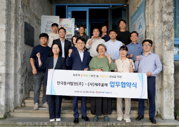 [메이저뉴스]한국동서발전㈜(사장 권명호) 제주사업추진단과 (사)제주올레(대표이사 안은주)는 23일 15시 서귀포 제주올레여행자센터에서 ‘제주의 문화·자연환경 보전 및 지역인재 양성을 위한 업무협약’을 체결했다.