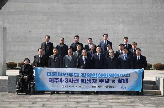 [메이저뉴스] 제주특별자치도의회 더불어민주당 교섭단체(원내대표 송창권)는 2월 20일 오전 11시 제주4·3 평화공원에서 더불어민주당 전국광역의회의원협의회와 함께 제주4·3 희생자 추모 및 참배를 진행했다.