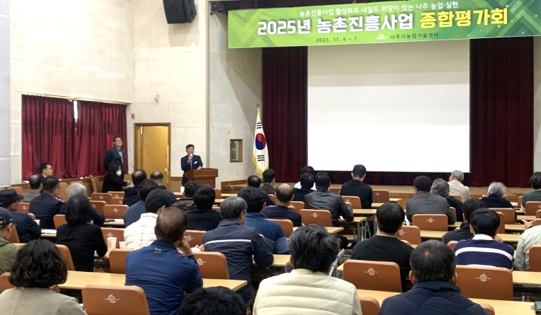 [메이저뉴스]전라남도 나주시가 올해 추진한 농촌진흥사업의 주요 성과를 공유하고 향후 발전 방향을 모색하기 위해 6일 농업기술센터 대강당에서 ‘2025년 농촌진흥사업 종합평가회’를 개최했다.