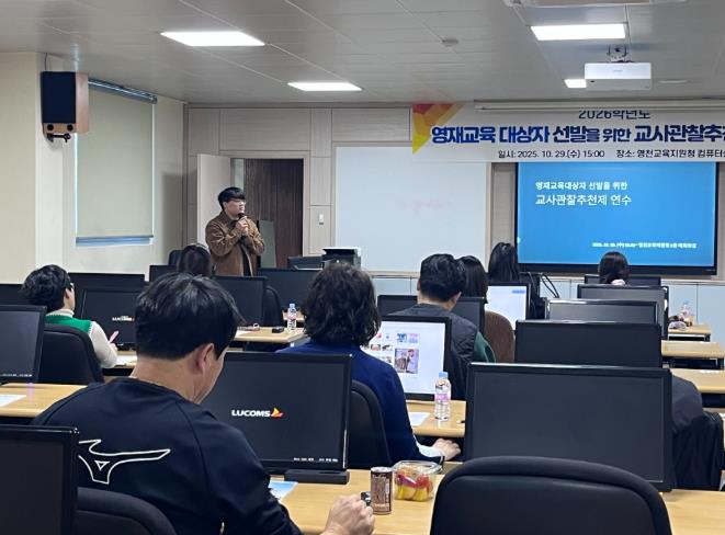 [메이저뉴스]경상북도영천교육지원청은 10월 29일 오후 3시, 영천교육지원청 3층 컴퓨터실에서‘2026학년도 영재교육대상자 선발을 위한 교사관찰추천제 연수’를 실시했다.