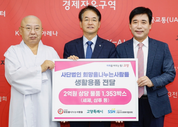 [메이저뉴스]고양특례시는 23일 (사)희망을 나누는 사람들로부터 2억 원 상당의 생활용품 1,353박스를 전달받았다고 밝혔다.