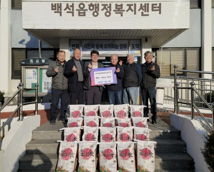 백승호 백석읍장은 “지역 농업인들이 정성껏 생산한 쌀을 직접 나눠주셔서 더욱 뜻깊다”며 “전달해주신 따뜻한 마음을 꼭 필요한 곳에 잘 전하겠다”고 감사를 전했다.