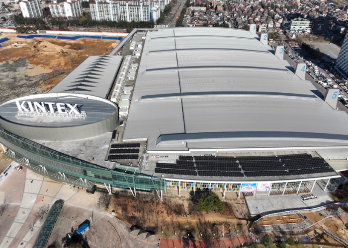 | ▲ 킨텍스 제1전시장 옥상에 설치된 태양광 발전시설 |