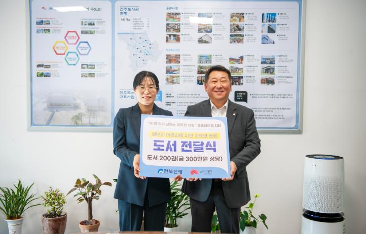 [메이저뉴스]전주시는 23일 지역 대표 향토기업인 전북은행이 도서 200여 권(300만 원 상당)을 기부했다고 밝혔다.