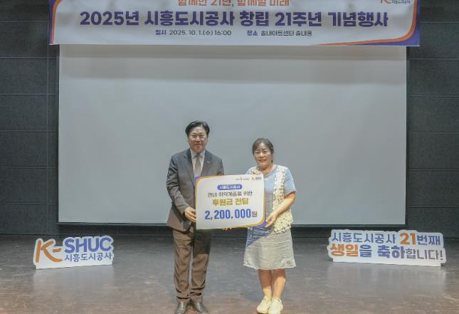 [메이저뉴스]시흥도시공사는 지역사회의 어려운 이웃을 돕기 위해 마련한 성금 220만 원을 시흥시1%복지재단에 기탁했다고 밝혔다.