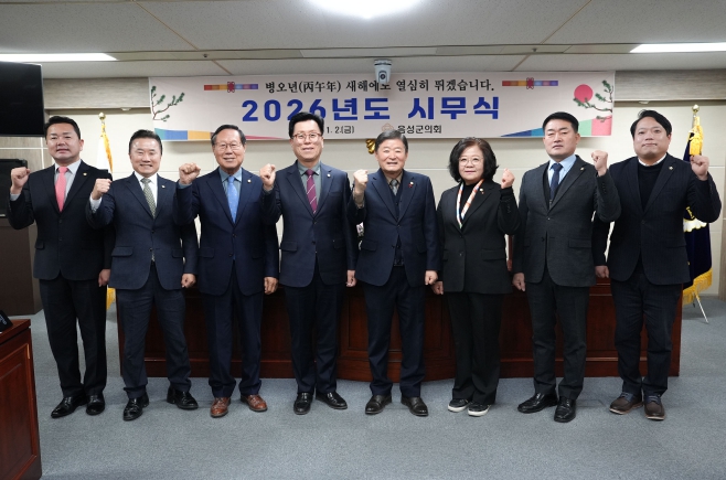 [메이저뉴스]음성군의회는 1월 2일 의회 소회의실에서 의원 및 의회사무과 직원들이 참석한 가운데 2026년 시무식을 개최하고 새해 의정활동의 힘찬 출발을 알렸다.