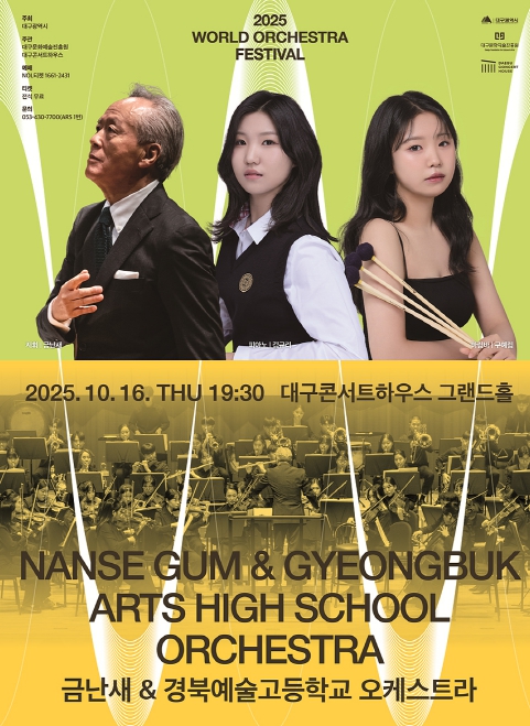 [메이저뉴스]대구콘서트하우스는 오는 10월 16일 오후 7시 30분, 그랜드홀에서 2025 월드오케스트라페스티벌의 일환으로 ‘금난새 · 경북예고오케스트라’ 공연을 선보인다.