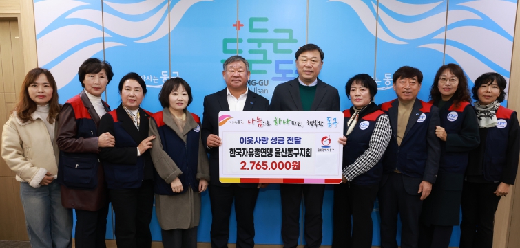 [메이저뉴스]한국자유총연맹 울산동구지회(회장 이병태)는 11월 24일 오전 11시 울산 동구청을 방문해 이웃돕기 성금 276만 5천 원을 전달했다.