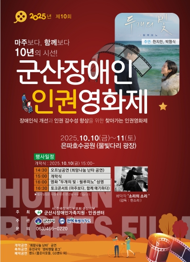 [메이저뉴스]군산시 장애인가족지원인권센터가 10월 10일부터 11일까지 은파호수공원 물빛다리 광장에서 군산시민을 대상으로 장애인 인식개선 및 인권의식 함양을 위한 2025년 제10회 군산장애인인권영화제를 개최한다.