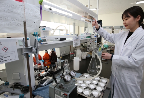 | ▲ _인천환경공단 환경연구소 직원이 수질실험을 하고 있다. |