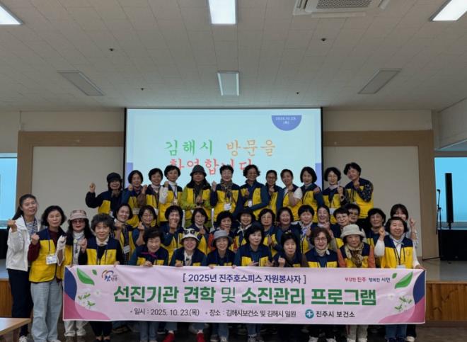 [메이저뉴스]진주시 보건소는 호스피스 자원봉사자들의 돌봄 서비스 역량 강화와 사기진작을 위해 23일 김해시보건소 견학 및 소진관리 프로그램을 실시했다고 밝혔다.