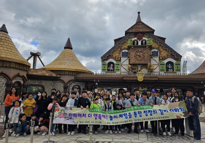이번 2025학년도 청도 특수교육대상학생 현장체험학습은 '놀이 체험을 통한 성장의 깊이 더하기'라는 주제로 롯데월드어드벤처(부산)에서 다양한 어트랙션 이용, 매직 페어리 밴드 거리 공연 및 로티스 매직포레스트 퍼레이드 축제 등을 관람했다. 이를 통하여 일상생활 및 학교에서 경험할 수 없는 놀이 체험을 통해 협동심 뿐만 아니라 나눔과 배려를 실천하고 일상에서의 스트레스를 해소하고 심신 안정을 통한 조화로운 발달을 도모할 수 있었다.