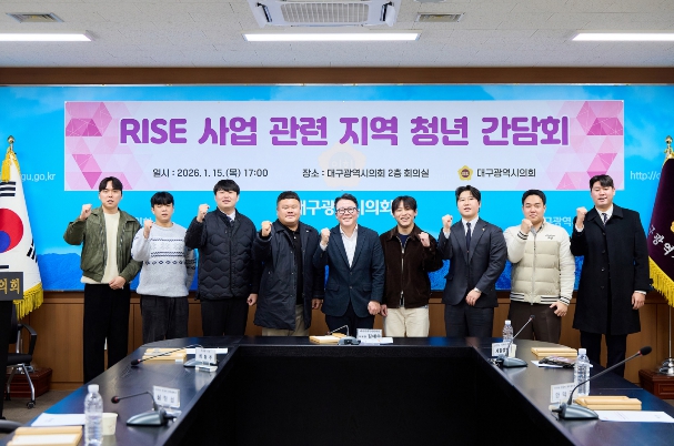 [메이저뉴스]대구시의회 김태우 예산결산특별위원장(수성구5)은 1월 15일 시의회 2층 회의실에서 지역 청년 대표들과 함께 RISE(지역혁신중심 대학지원체계) 사업 관련 간담회를 개최했다.