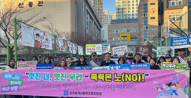 한편 광주동부교육지원청은 지난 5월부터 관내 학교를 대상으로 학교폭력 예방 캠페인 및 학교 주변 취약지역 학교폭력 예방 활동과 ‘찾아가는 학교폭력 예방 교육’을 전개하며 학교 폭력 없는 존중과 신뢰의 학교문화 정착에 힘쓰고 있다.