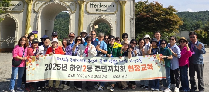 [메이저뉴스]광명시 하안2동 주민자치회는 지난 25일 주민자치위원 역량 강화를 위한 2025년 현장교육으로 경기도 포천시에 위치한 포천 아트밸리와 허브아일랜드를 방문했다.