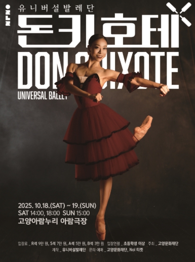 [메이저뉴스](재)고양문화재단은 유니버설발레단의 고전발레 명작 〈돈키호테 Don Quixote〉를 오는 10월 18일~19일 고양아람누리 아람극장에서 선보인다. 2년 만에 다시 무대에 오르는 유니버설발레단의 〈돈키호테〉는 올해 오직 고양에서만 만날 수 있는 단독 공연이다.