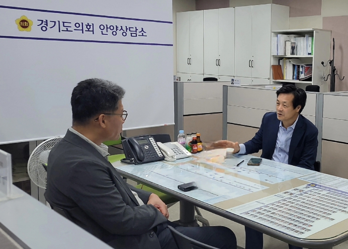 [메이저뉴스]경기도의회 문형근(더불어민주당, 안양3)의원은 13일 도의회 안양상담소에서 해당 지역구 운곡공원 생활 체육시설 환경개선 관련으로 안양시 체육과 이인수 체육시설팀장과 함께 면담을 진행했다.
