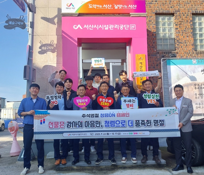 [메이저뉴스]서산시시설관리공단은 다가오는 추석 명절을 맞아 건전하고 투명한 조직문화를 확립하기 위해‘청렴ON 캠페인’을 9월 22일부터 10월 17일까지 운영한다고 밝혔다.