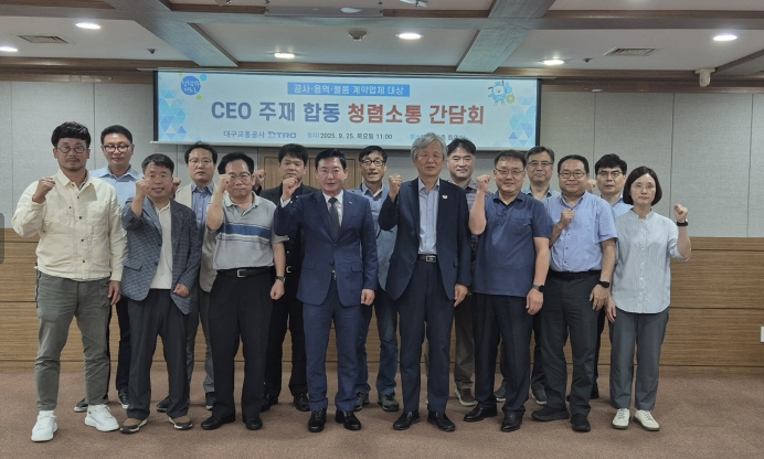 [메이저뉴스] 대구교통공사는 지난 9월 25일 본사 회의실에서 공사·용역·물품 구매 등 공사와 계약 실적이 있는 지역 업체 대표 8명을 초청해‘CEO 주재 청렴소통 간담회’를 개최했다.