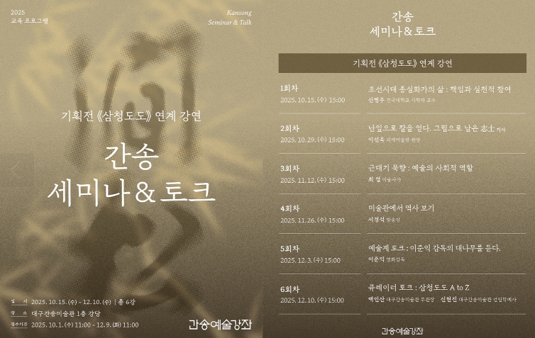 전시 및 간송예술강좌에 대한 자세한 정보는 대구간송미술관 누리집 및 SNS 참조.