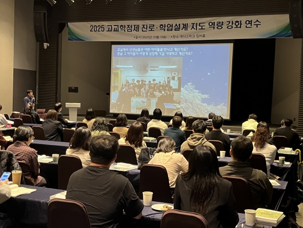 [메이저뉴스] 강원특별자치도교육청은 10월 14일 평창 휘닉스호텔에서 도내 고등학교 교원을 대상으로 ‘2025 고교학점제 진로·학업 설계 지도 역량 강화 연수’를 실시했다.