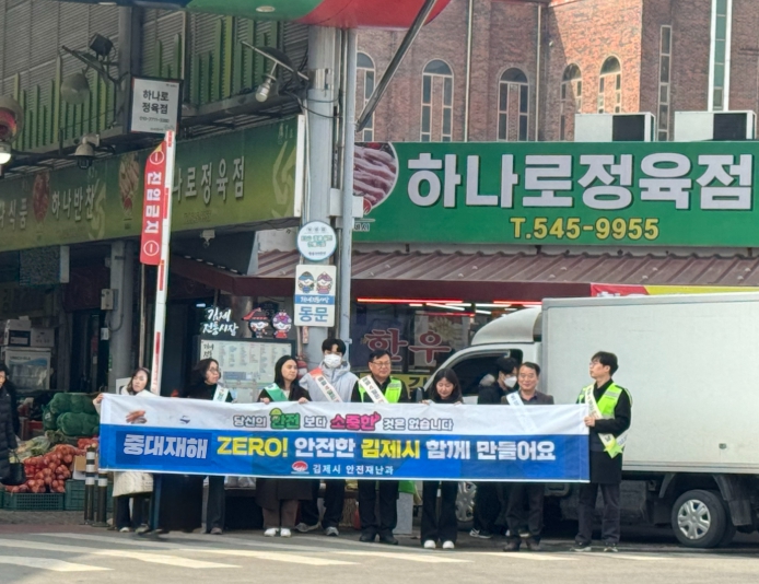 이날 캠페인은 시 안전재난과가 주관해 김제 전통시장 상인 및 방문객들을 대상으로 진행됐으며, 잠시라도 추위에 손을 녹일 수 있는 핫팩을 나눠주는 등 시민들에게 한파 안전의 중요성을 알렸다.