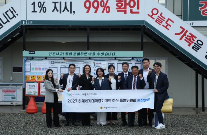 [메이저뉴스] 세종특별자치시의회 2027 하계세계대학경기대회 추진 특별위원회(위원장 김현미)는 지난 13일 합강동 일원에서 추진 중인 선수촌 건립 현장을 방문하여 공정 진행 상황을 점검하고 향후 활용 방안에 대해 논의했다.