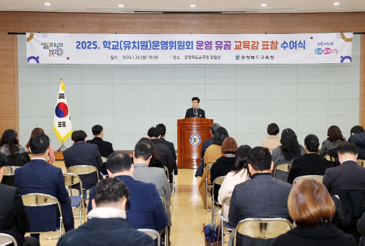 [메이저뉴스]충청북도교육청은 26일, 도교육청 화합관에서 '2025년 학교운영위원회 유공자 표창 수여식'을 개최했다고 밝혔다.