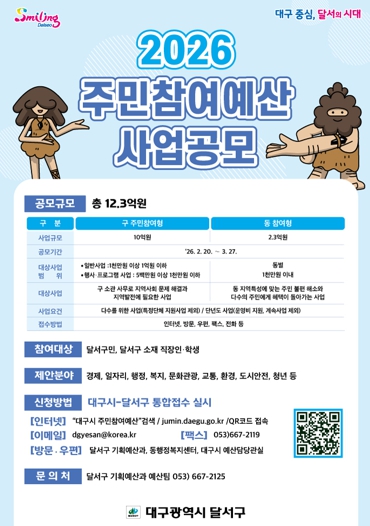 [메이저뉴스]대구 달서구가 2월 20일부터 3월 27일까지 2027년도 예산 편성을 위한 주민참여예산 제안사업을 접수한다.