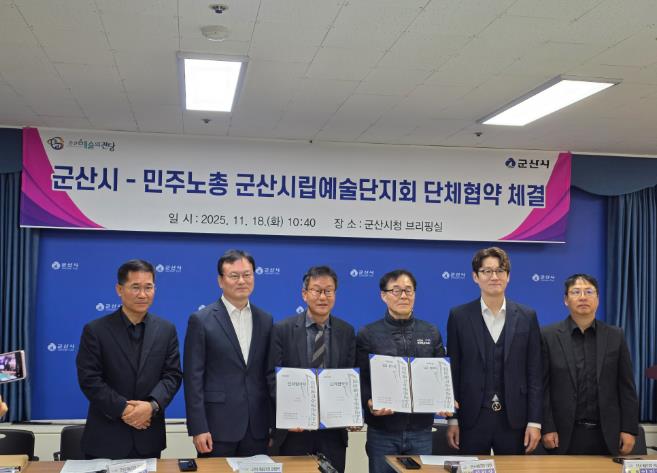[메이저뉴스]군산시와 민주노총 공공운수사회서비스노조 군산시립예술단지회가 시립예술단의 운영 안정화와 지속적인 발전을 위한 단체협약을 18일 체결했다고 밝혔다.