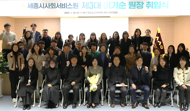 세종시사회서비스원은 26일 원내 다목적홀에서 임직원들이 참석한 가운데 취임식을 개최했다.