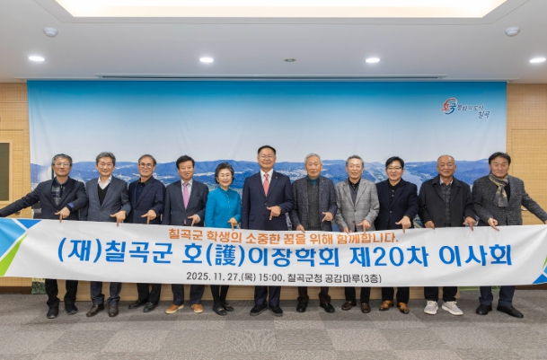 [메이저뉴스](재)칠곡군호이장학회는 지난달 27일 칠곡군청 공감마루 회의실에서 김재욱 이사장(칠곡군수)을 비룻한 이사 및 감사들이 참석한 가운데 ‘제20차 정기 이사회’를 개최했다.