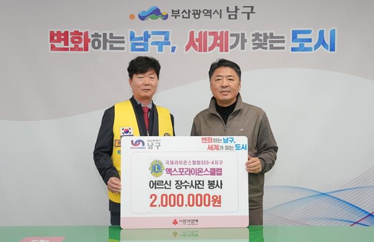 | ▲ 엑스포라이온스클럽, 부산 남구에 장수사진 전달 |