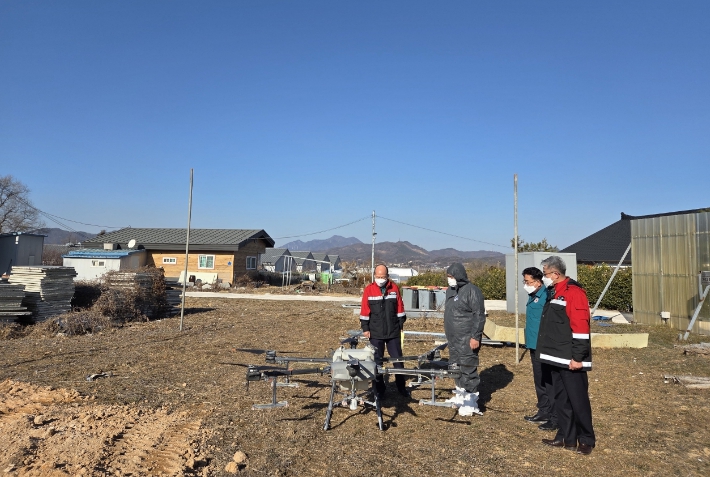 [메이저뉴스]충주시는 7일 고병원성 조류인플루엔자 방생농장 일대에서 드론을 이용해 소독약을 살포하는 방제를 실시했다.